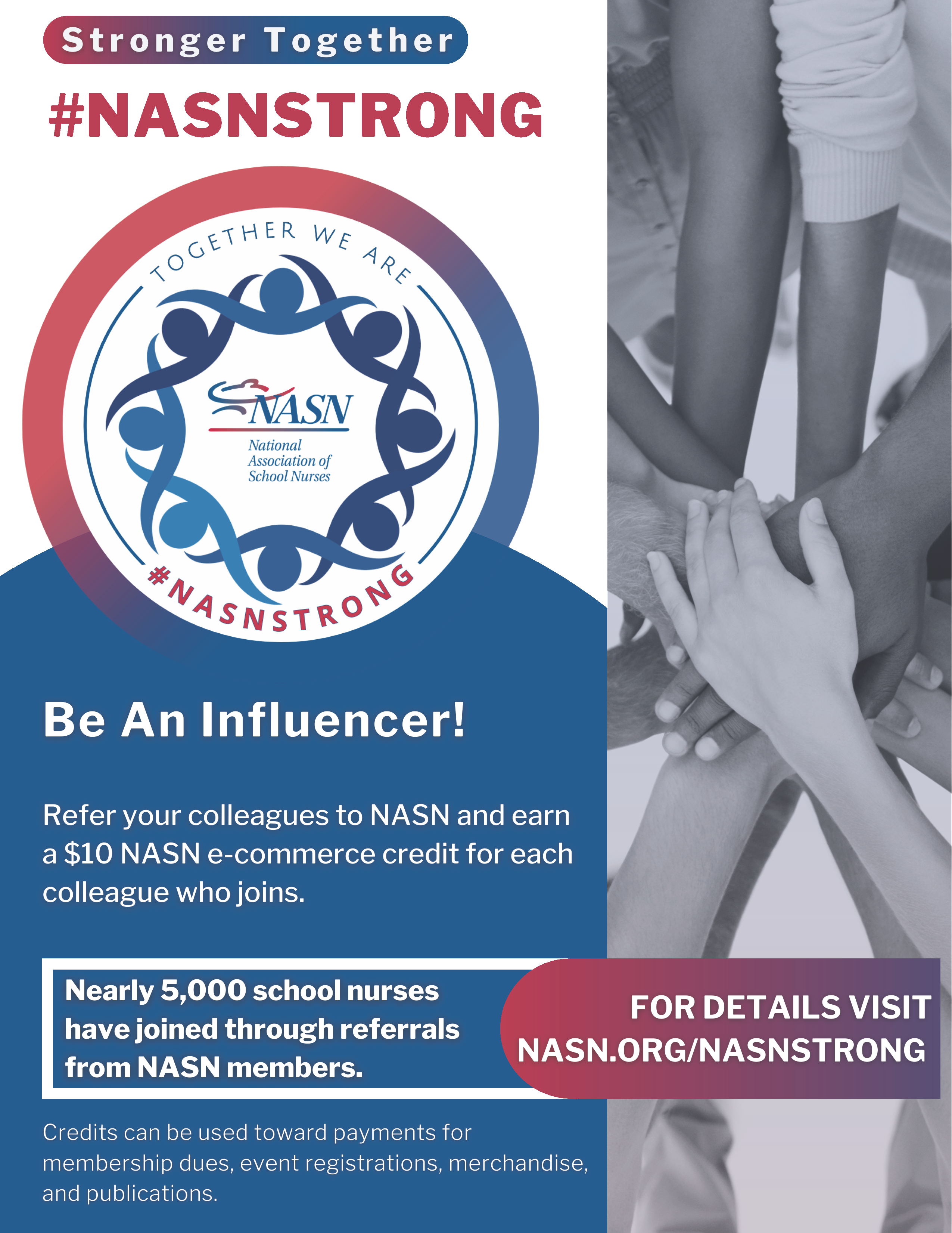 Membership dues are collected and managed at NASN's national headquarters.